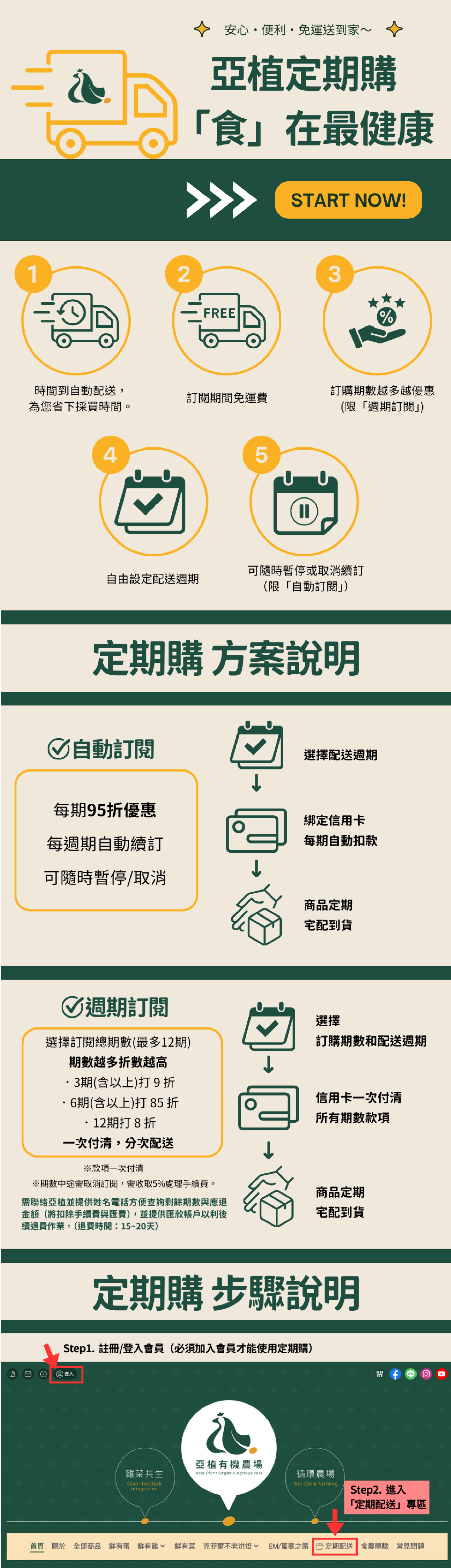 定期購會每個月信用卡自動下訂單,方便大家長期訂購。