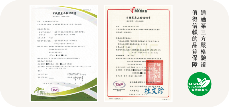 有機分裝|采園生態驗證 有機農產品驗證證書 證書字號:1-0080141005